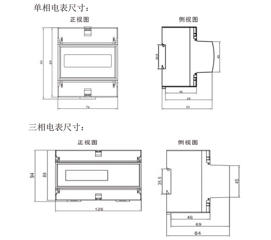 | 外形尺寸 | 76X94X84(单相)/126X94X84(三相) |