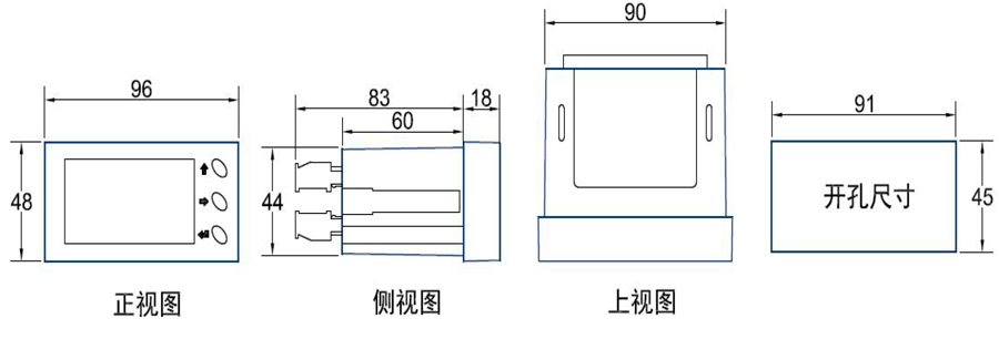 2、 面框尺寸 96×48mm,盘面安装密度高,适合各种抽屉柜;