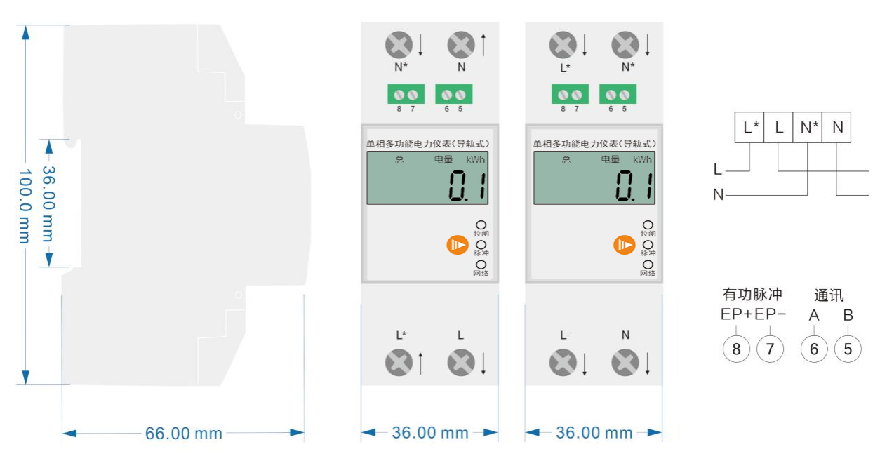 导轨式多功能电力仪表是本公司集多年的电表设计经验,所推出的新一代微型导轨式电能表。该仪表采用LCD显示,并具有电能脉冲输出功能;它集计量、费控、监控、报警、显示、通讯功能于一身,实现单个居民用户的用电计量和用电信息采集存储。并支持通过 4G 网络和 485 接口远程实现充值、参数设置及控制功能的电能表。该仪表具有体积小、精度高、可靠性好、安装方便等优点、性能指标符合国际GB/T17215、GB/T17883和电力行业DL/T614对仪表的各项技术要求。