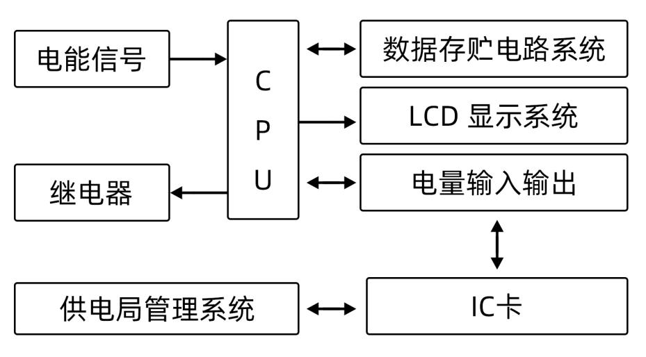 电能计量脉冲经光电耦合器送CPU处理,运算后存储于EEPROM中。由计算机管理信息系统,通过IC卡读写器,写入一定电量和监控要求的IC卡输入表内微处理器系统,经CPU运算后,提供显示、切断状态信号。